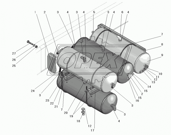 6363-3513080 Кронштейн баллонов передний L=560 s=190 10отв. ф10,2отв. ф14 Урал