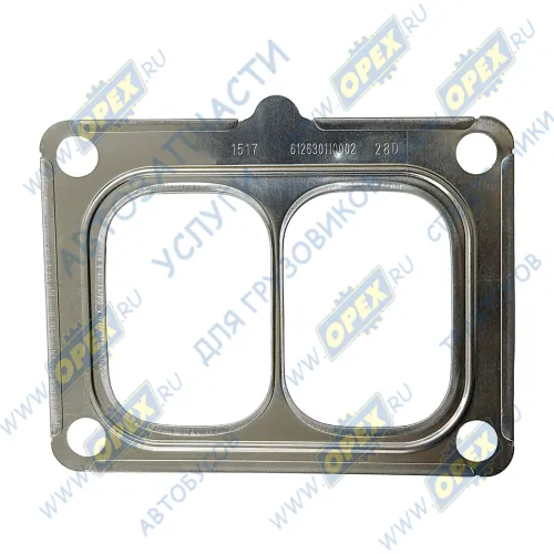 612630110002 Прокладка (м/асбест) прямоуг. 125х95 2 внутр. отв. 63х44 4 отв. ф11 с выступом перфорированная турбокомпрессора WP12 Weichai Weichai Power