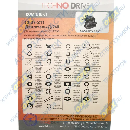 12-37-211 РМК прокладок ДВС (двигателя) ММЗ Д240,245; (полный) 34 наим. паронит Techno Drive0